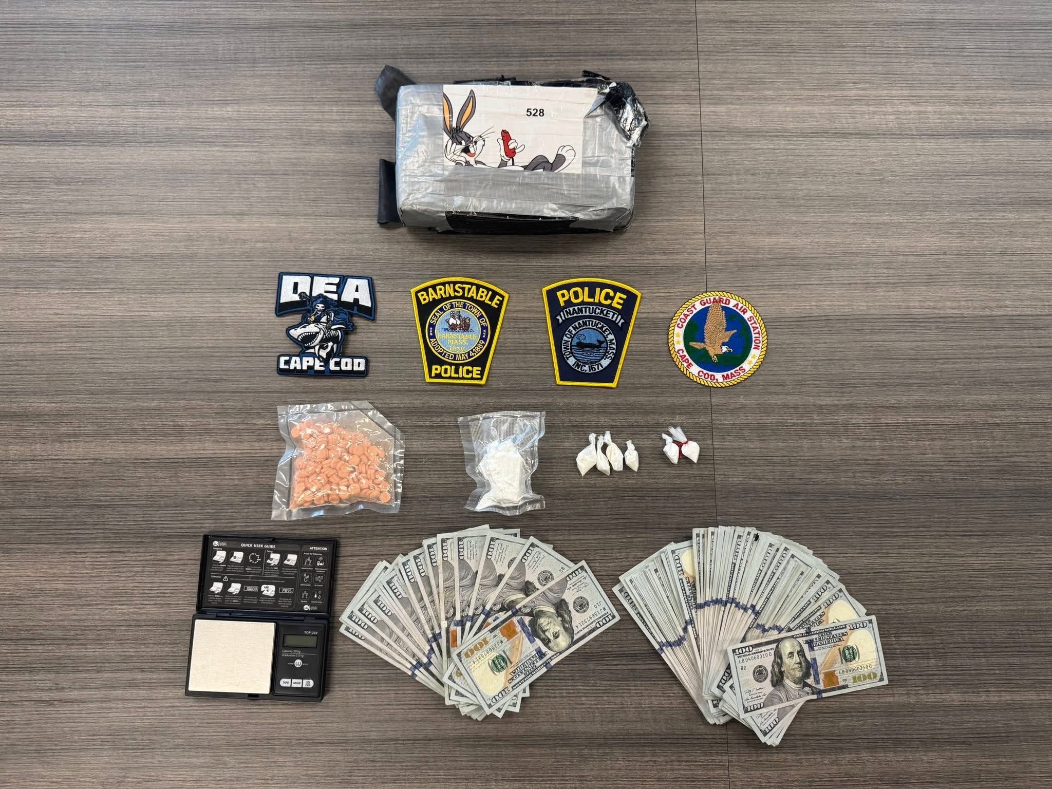 Following the arrest, police secured a search warrant for Gillespie’s Nantucket home. With help from Nantucket Police, the U.S. Coast Guard, and federal drug agents with the DEA, officers searched the residence and uncovered what they described as clear evidence of an active drug operation.