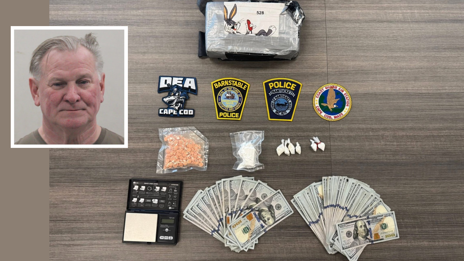 HYANNIS — A 62-year-old Nantucket man is facing the possibility of decades behind bars after police say they caught him in Hyannis preparing to move a kilo of cocaine back to the island — exposing a drug pipeline quietly feeding one of Massachusetts’ most exclusive communities.