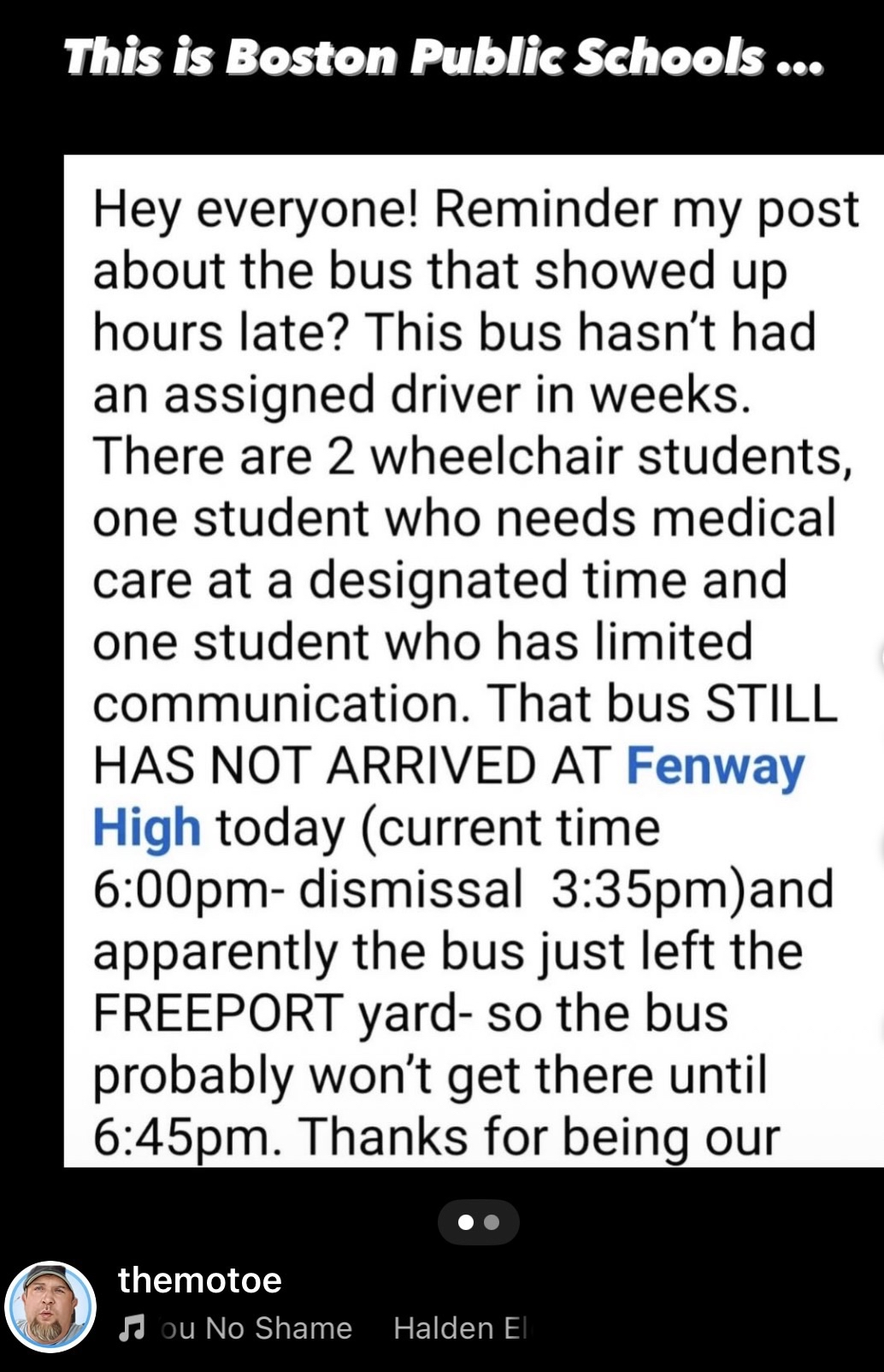 The students, including one who requires timed medical care, waited in vain at Fenway High School as their bus simply failed to show.