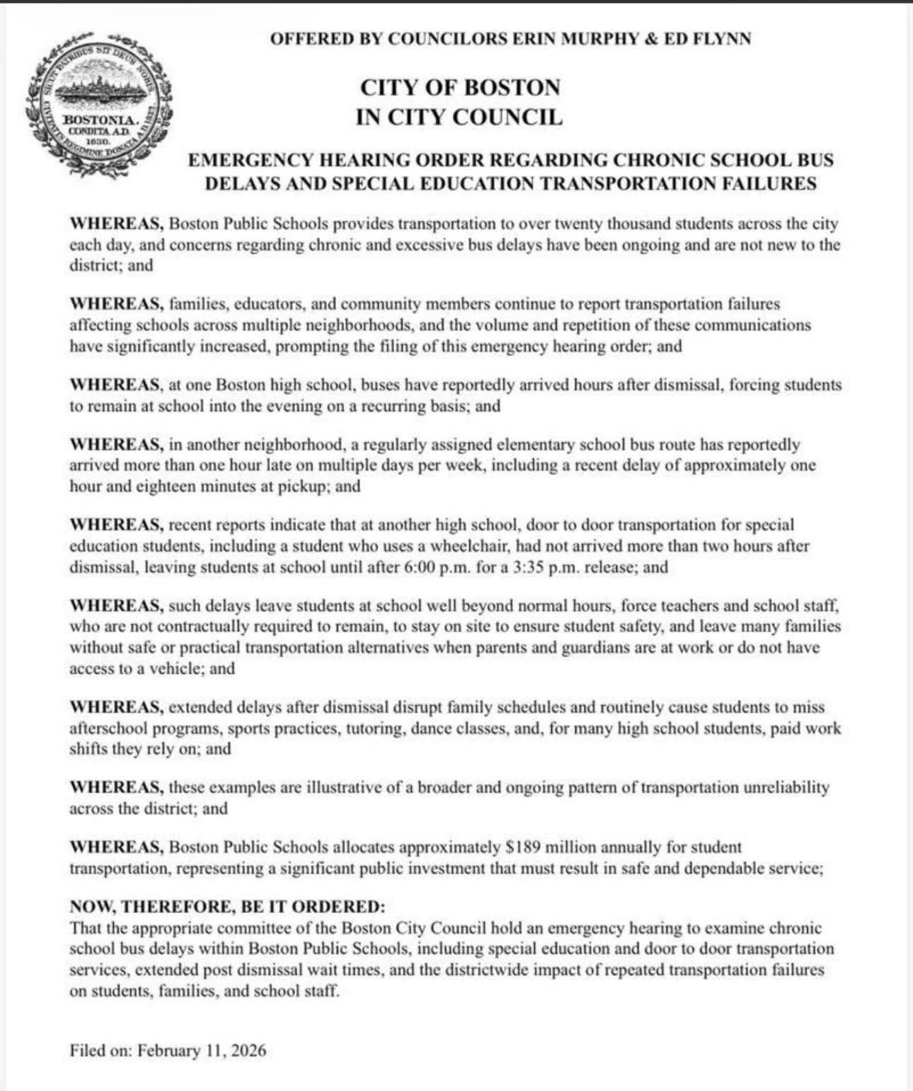 Councilors Erin Murphy and Ed Flynn filed an emergency hearing order on February 11 demanding answers.